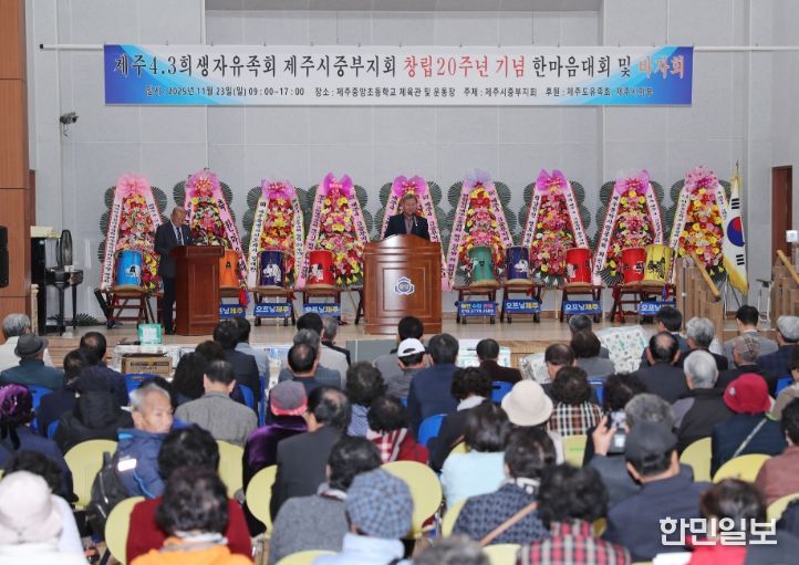 한민일보 서울포커스 김다남 기자 | 김완근 제주시장은 23일 제주중앙초등학교에서 열린 제주4·3희생자유족회 중부지회 창립20주년 기념 한마음대회에 참석했다.