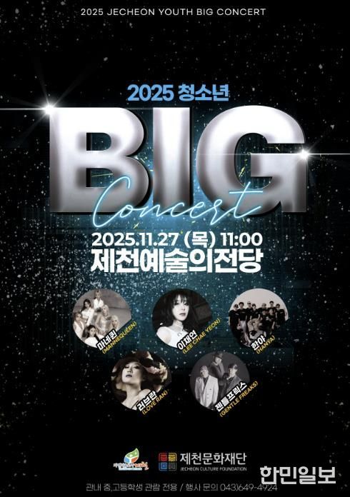 한민일보 서울포커스 김다남 기자 | (재)제천문화재단은 오는 27일 제천예술의전당에서 ‘2025 청소년 빅콘서트’를 개최한다고 밝혔다. 이번 공연은 수능을 마친 고등학교 3학년을 비롯한 지역 청소년들에게 휴식과 재충전의 시간을 제공하기 위해 마련된 특별한 문화행사다.