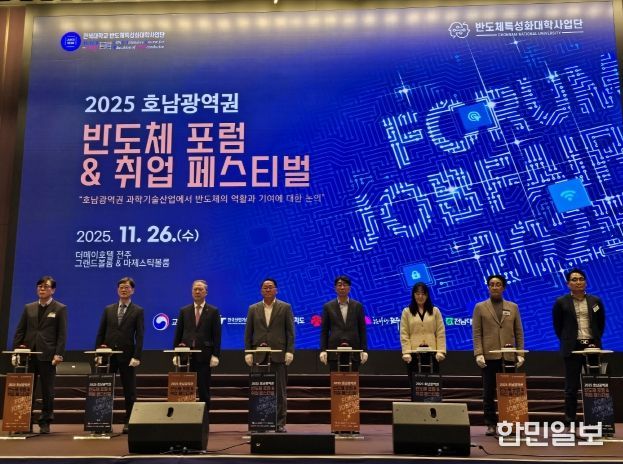 26일 전주 더메이호텔에서 김종훈 전북자치도 경제부지사, 우범기 전주시장, 양오봉 전북대 총장, 전세희 전북지방중소벤처기업청장, 김양현 전남대 부총장 등이 참석한 가운데 '호남 광역권 반도체 포럼 및 취업페스티벌'이 열렸다.