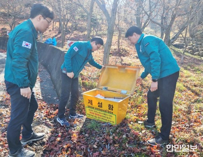 특히, 상습 결빙 지역인 오도재와 원통재의 염수분사장치 및 통제 시설이 정상 작동하는지 점검했으며, 제설 차량과 살포기 등 장비의 가동 상태도 확인했다. 또한, 염화칼슘과 모래 등 제설 자재의 충분한 비축 여부도 점검했다.