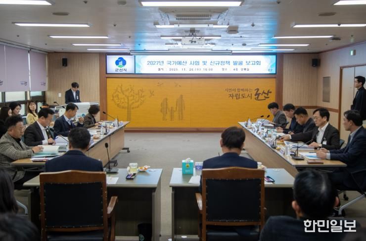 한민일보 서울포커스 김용택 기자 | 군산시가 26일 시청 상황실에서 '2027년 국가예산 사업 및 신규정책 발굴 보고회'를 열고, 새정부 국정기조와 지역현안에 맞춘 미래전략 사업들을 본격적으로 논의했다.