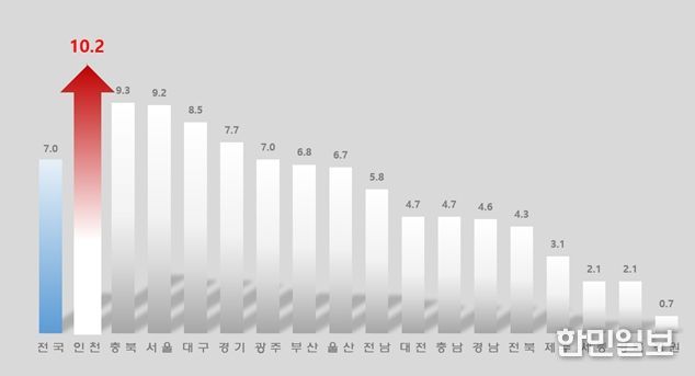 통계청이 발표한 ‘2025년 9월 인구동향’에 따르면, 인천시는 올해 1월부터 9월까지 출생아 수가 전년 같은 기간보다 10.2% 늘어나 전국 17개 시·도 가운데 가장 높은 증가율을 보였다. 반면, 충북(9.3%)과 서울(9.2%)이 그 뒤를 이었으며 전국 평균 증가율은 7.0%에 그쳤다.
