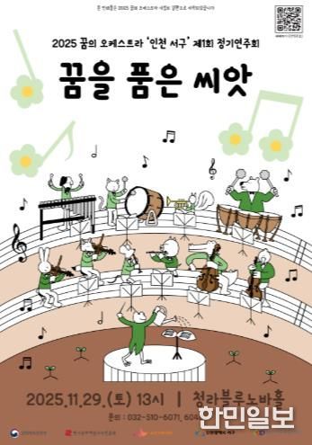 한민일보 서울포커스 김용택 기자 | 인천서구문화재단이 운영하는 ‘꿈의 오케스트라 인천 서구’가 오는 11월 29일 오후 1시, 청라블루노바홀에서 제1회 정기연주회 ‘꿈을 품은 씨앗’을 개최한다.