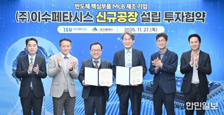 한민일보 서울포커스 임철현 기자 | 대구광역시는 11월 27일, 시청 산격청사에서 ㈜이수페타시스(대표 최창복)와 503억 원 규모의 투자협약을 체결했다. 이번 협약에 따라 고다층 인쇄회로기판(MLB) 생산을 위한 드릴공정 신규공장이 달성2차산업단지에 설립된다.