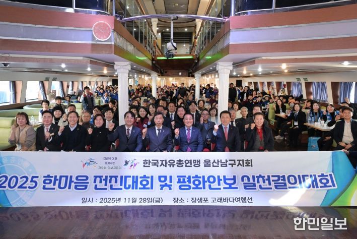 한민일보 서울포커스 기자 | 한국자유총연맹 울산남구지회(회장 이상득)는 28일 고래바다여행선에서 회원 250여 명이 참석한 가운데 한마음 전진대회를 개최했다고 밝혔다.