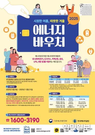 에너지바우처 사업은 취약계층 가구가 여름과 겨울철에 필요한 냉난방 에너지를 구입할 수 있도록 돕는 사업이다. 대상자는 전기·도시가스·지역난방 고지서에서 자동 차감받거나, 국민행복카드를 통해 원하는 에너지원에 대해 결제할 수 있다.