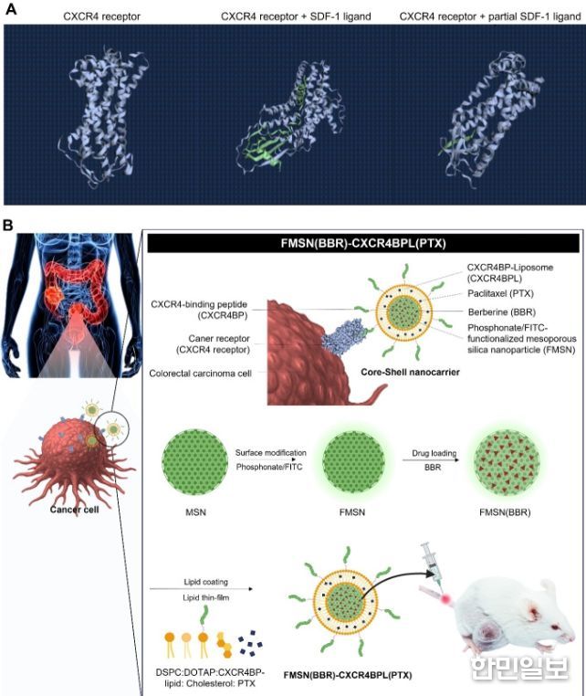 연구 성과는 Journal of Nanobiotechnology(피인용지수 12.6, JCR 상위 2.0%) 온라인판에 ‘AI-guided design of a CXCR4-targeted core-shell nanocarrier for co-delivery of berberine/paclitaxel in cancer therapy’라는 제목으로 게재됐다.