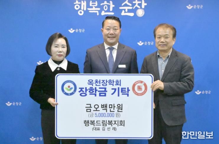 한민일보 서울포커스 김용택 기자 | 순창군이 1일 (사)행복드림복지회에서 순창군옥천장학회에 장학금 500만원을 기탁했다고 밝혔다.