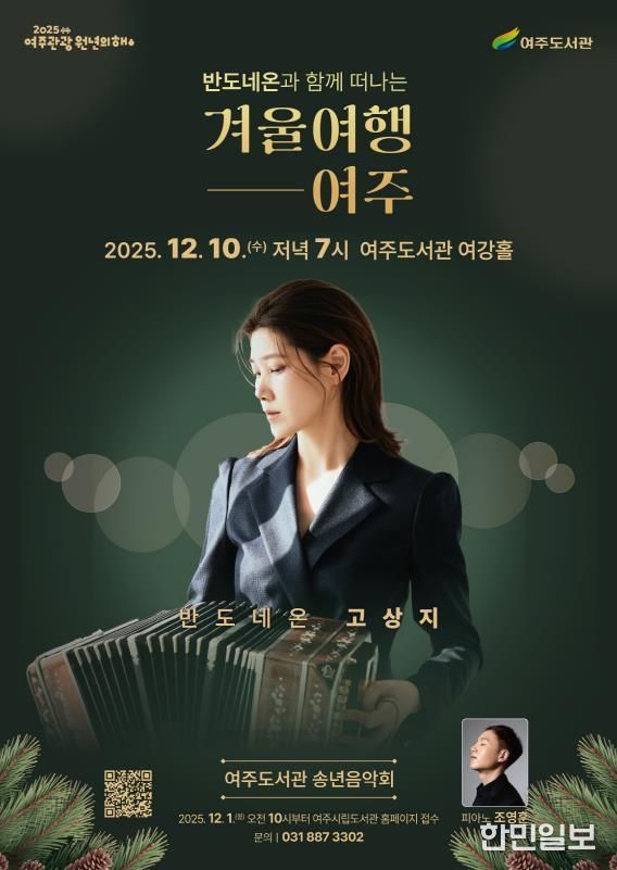 한민일보 서울포커스 전희주 기자 | 여주시 평생교육과 여주도서관은 오는 12월 10일 오후 7시, 여강홀에서 반도네오니스트 고상지와 피아니스트 조영훈이 함께하는 송년음악회를 개최한다.