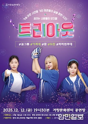 한민일보 서울포커스 김서윤 기자 | (재)거창문화재단(이사장 구인모 거창군수)은 오는 12일 오후 7시 30분에 거창문화센터 공연장에서 주크박스 뮤지컬'트리아웃'을 개최한다.