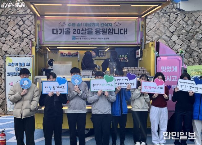 한민일보 서울포커스 기자 | 울산동구정신건강복지센터는 12월 2일 현대청운고등학교 수능 수험생을 대상으로 ‘마음 회복 간식 차’ 운영 이벤트를 진행했다.
