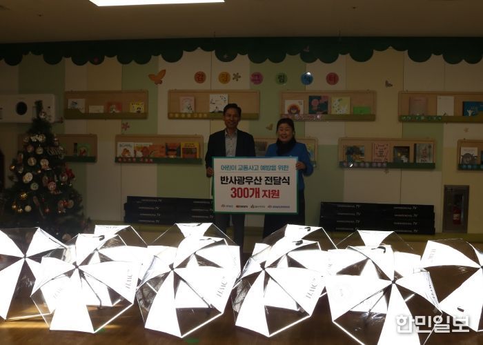 도는 한 변호사가 어린이 보행 안전을 위해 반사광 우산 300개를 추가 기부했다고 3일 밝혔다.