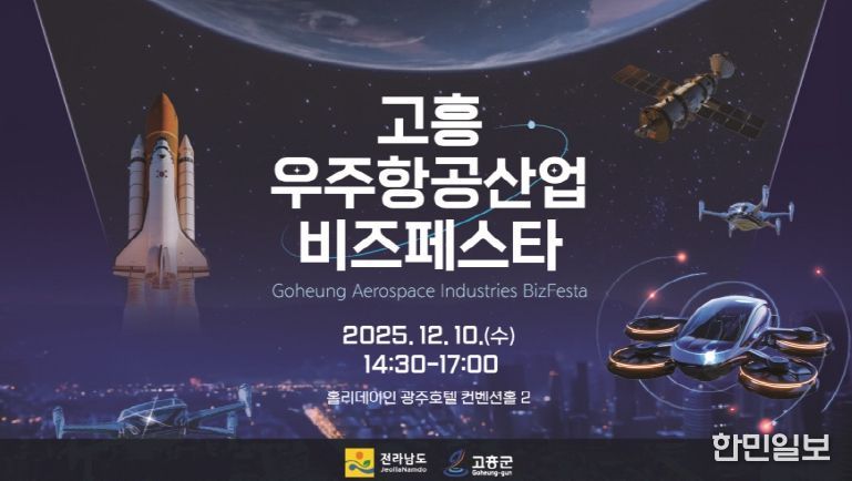 한민일보 서울포커스 임광현 기자 | 고흥군은 오는 12월 10일 광주광역시 홀리데이인 광주호텔에서 광주·전라권 ‘2025 고흥 우주항공산업 비즈 페스타’를 개최한다고 밝혔다.