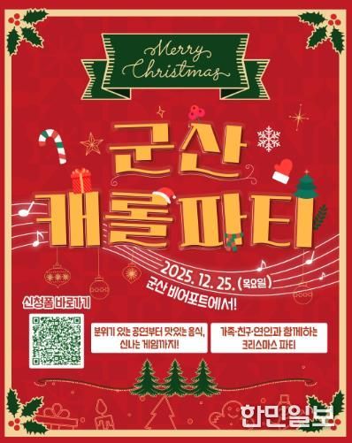 한민일보 서울포커스 김용택 기자 | 군산시가 겨울철 관광 비수기 활성화와 야간 관광 콘텐츠 확충을 위해 오는 25일 크리스마스 오후 7시, 군산비어포트에서 ‘2025 군산 캐롤 파티’를 개최한다.
