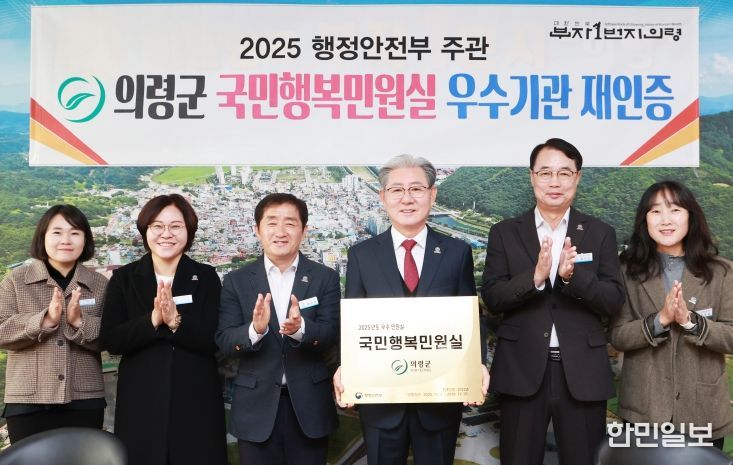 한민일보 서울포커스 김은금 기자 | 의령군이 행정안전부가 주관하는 ‘국민행복민원실’ 재인증 평가에서 우수기관으로 선정됐다. 인증 기간은 2025년 12월 1일부터 2028년 12월 31일까지 3년간이다.