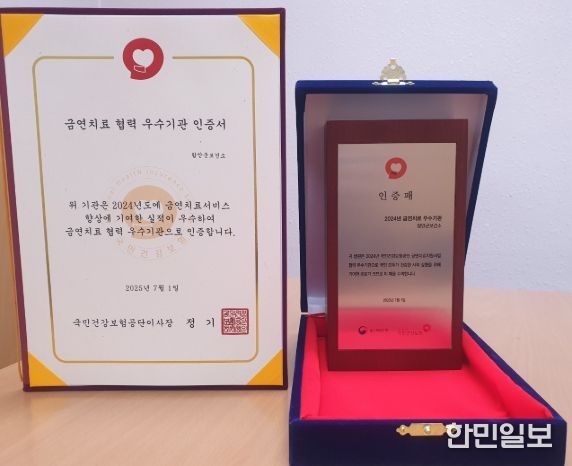 한민일보 서울포커스 김서윤 기자 | 함안군보건소는 국민건강보험공단이 주관한 2025년 금연치료지원사업 평가에서 ‘금연치료 협력 우수기관’에 선정돼 인증서와 인증패를 받았다.