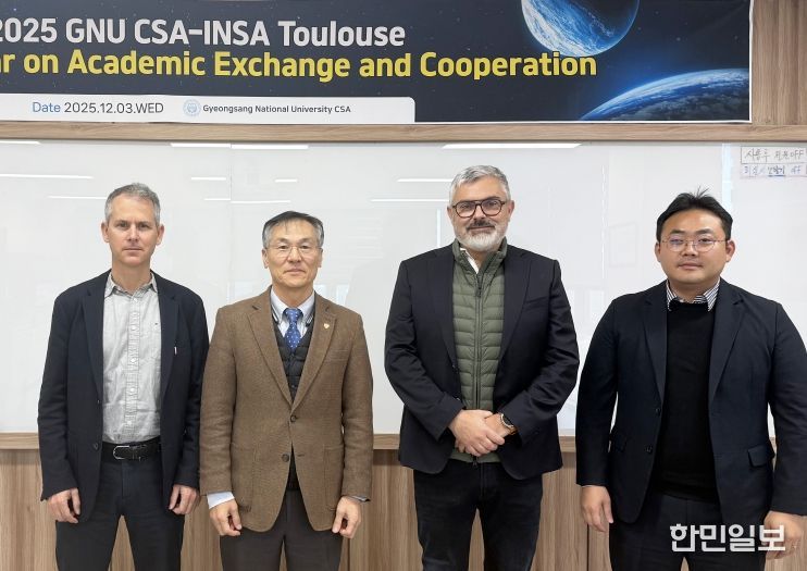 한민일보 서울포커스 박근원 기자 | 경상국립대학교 우주항공대학은 12월 3일 가좌캠퍼스 항공우주산학협력관에서 프랑스 국립응용과학원(INSA Toulouse, 인사툴루즈)와 ‘우주항공 연구교류회 및 특강’을 개최했다.