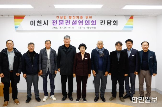 한민일보 서울포커스 박용남 기자 | 이천시는 12월 4일 시청 다올실에서 전문건설협회와 간담회를 열고 지역 건설산업과 관련한 현장의 의견을 청취하는 자리를 마련했다. 이번 간담회에는 김경희 이천시장과 김종구 전문건설협회장을 비롯한 협회 임원 등 총 9명이 참석했다.