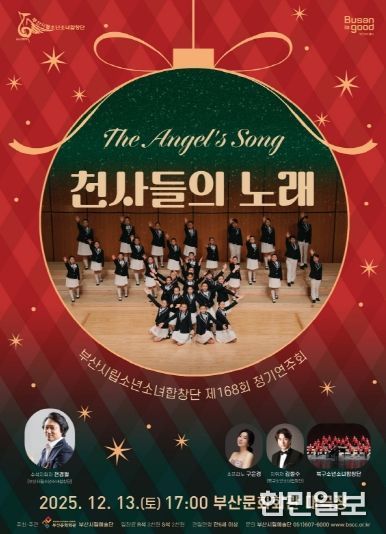 한민일보 서울포커스 임광현 기자 | 지난 2025 하계합창캠프를 통해 한층 성장한 부산시립소년소녀합창단(수석지휘자 천경필)이 올해 마지막 무대로 제168회 정기연주회 '천사들의 노래(The Angel’s Song)'를 오는 12월 13일 부산문화회관 대극장에서 개최한다.