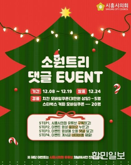 한민일보 서울포커스 유현민 기자 | 경기 시흥시의회가 다가오는 성탄절을 맞아 시민들과 따뜻한 마음을 나누고 소통을 강화하기 위해 ‘소원트리 댓글 이벤트’를 진행한다.