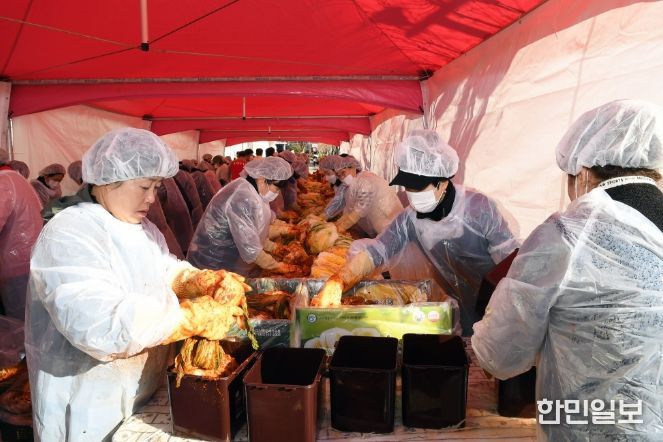 자원봉사자들은 추운 날씨에도 정성껏 김장 김치를 담가 어려운 이웃의 따뜻한 겨울나기를 응원했다.