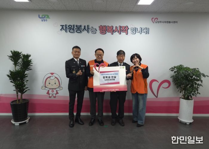 한민일보 서울포커스 김성윤 기자 | 남양주시자원봉사센터 북부분소는 9일 남양주북부경찰서 광릉자율방범대로부터 취약계층 청소년을 위한 장학금 100만원을 전달받았다.