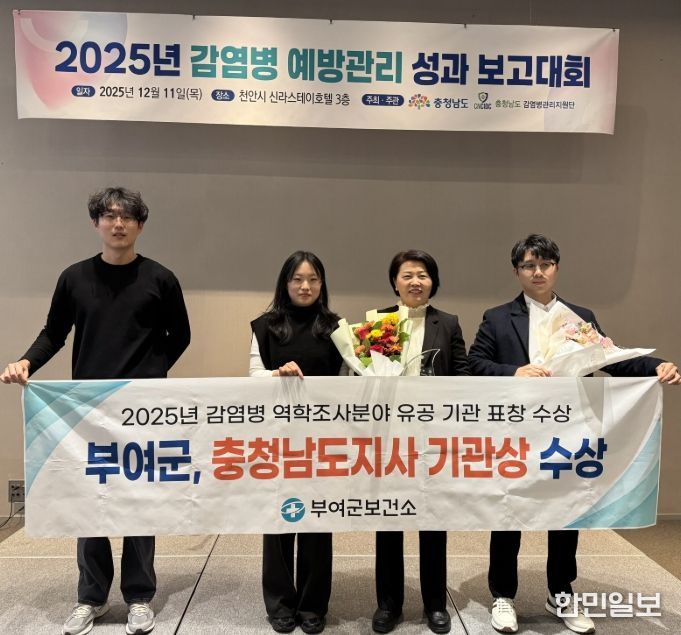 한민일보 서울포커스 유돈상 기자 | 부여군보건소는 충남도청에서 개최된 '2025년 감염병 예방 관리 성과 보고대회'에서 감염병 역학조사 분야 유공 기관으로 충청남도지사 기관 표창을 받았다고 12일 밝혔다.