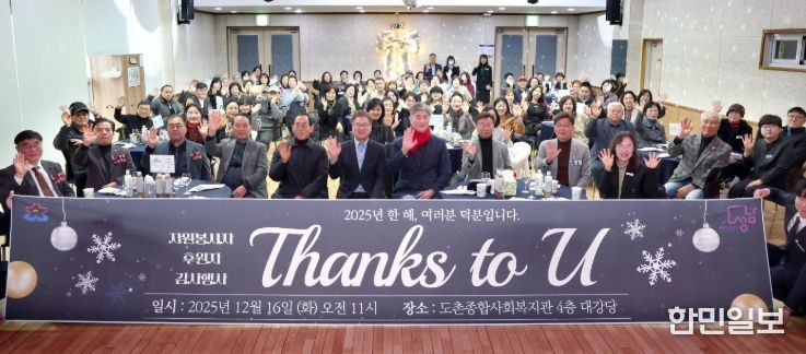 한민일보 서울포커스 김성혜 기자 | 성남시의회는 16일 도촌종합사회복지관 4층 누리마당에서 열린‘도촌종합사회복지관 자원봉사자·후원자 감사행사’에 참석해 지역 복지 현장을 묵묵히 지켜온 봉사자와 후원자들에게 감사의 뜻을 전했다.