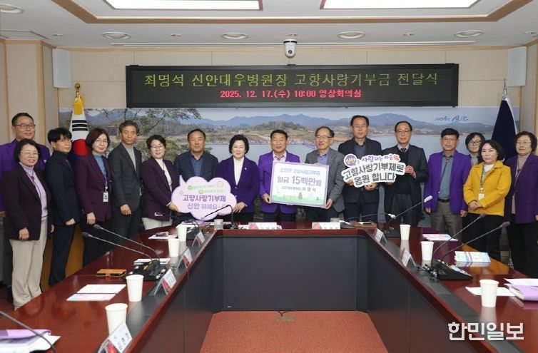 한민일보 서울포커스 임광현 기자 | 신안군은 최명석 신안대우병원장이 고향사랑기부금 1,500만 원을 군에 전달했다고 17일 밝혔다. 이 기부금은 최 병원장이 최근 수상한 ‘김우중 의료인상’ 상금 중 일부다.