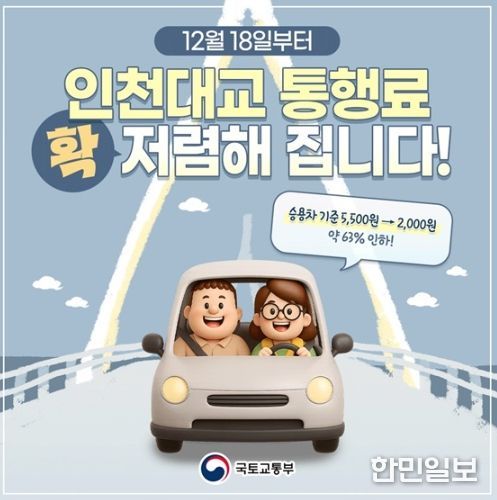 한민일보 서울포커스 임경복 기자 | 12월 18일부터 인천대교 통행료 확 저렴해 집니다!