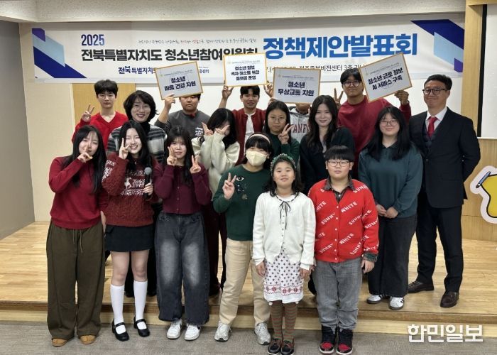 한민일보 서울포커스 박용남 기자 | 전북특별자치도는 17일 전주중부비전센터에서 도내 청소년과 관계자 등 20여 명이 참석한 가운데 ‘2025년 전북특별자치도 청소년참여위원회 정책제안 발표회’를 개최했다.