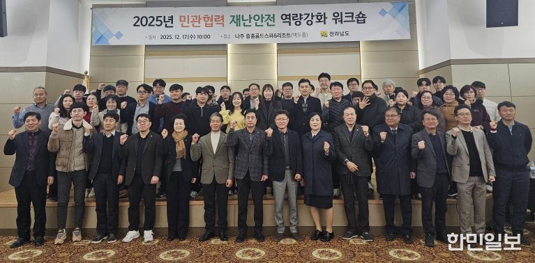 한민일보 서울포커스 박정민 기자 | 전라남도는 17일 나주 중흥골드스파&리조트에서 2025 민관협력 재난안전 역량강화 워크숍을 열고 지역 대규모 재난 발생시 신속한 대응을 위한 민관협력을 더욱 강화키로 결의했다고 밝혔다.