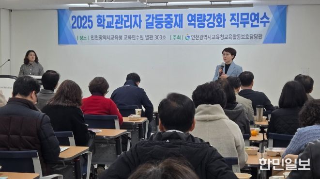 한민일보 서울포커스 유창렬 기자 | 인천광역시교육청은 11월 25일부터 12월 17일까지 학교관리자의 갈등중재 역량 강화를 위해 ‘2025학년도 학교관리자 갈등중재 역량강화 직무연수’를 4회에 걸쳐 운영했다.