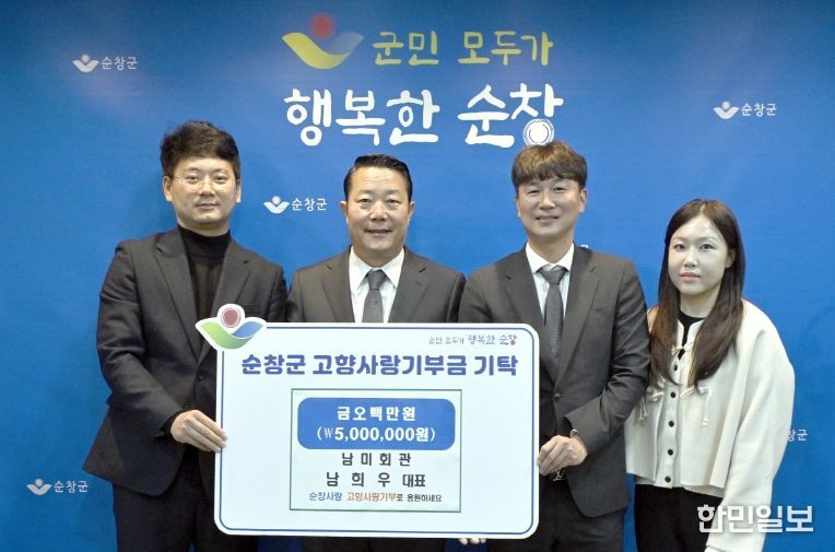 한민일보 서울포커스 김용택 기자 | 순창군은 18일 정읍 소재 남미회관 남희우 대표가 순창군에 고향사랑기부금 500만원을 기탁했다고 밝혔다.