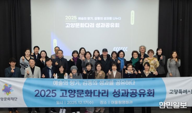 한민일보 서울포커스 김은금 기자 | 고양문화재단이 주관하고 고양특례시와 경기문화재단이 후원한 ‘2025 고양문화다리 성과공유회’가 참여 예술인, 예술단체, 시민모니터링단의 참여 속에 지난 17일 고양어울림누리 어울림상영관에서 성황리에 마무리됐다.