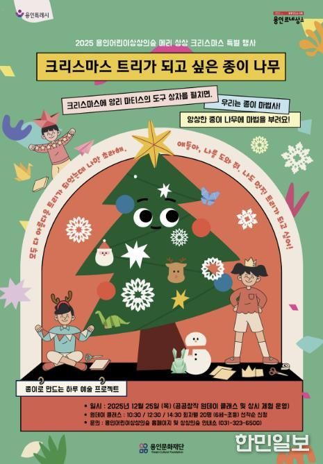 용인어린이상상의숲에서는 공공 창작 프로젝트 〈크리스마스트리가 되고 싶은 종이나무〉가 진행된다. 어린이들이 종이를 접고, 오리고, 붙이는 창작 활동을 통해 종이 나무를 함께 꾸며 하나의 크리스마스트리를 완성하는 참여형 프로그램으로, 아이들의 주체적인 참여를 통해 상상력과 표현력을 키우고 또래 친구들과 협력해 하나의 작품을 완성시키는 공동 창작의 즐거움도 경험할 수 있다.