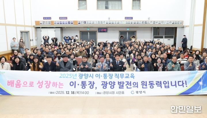 한민일보 서울포커스 임광현 기자 | 광양시는 지난 18일 시청 시민홀에서 12개 읍·면·동 이·통장 200여 명을 대상으로 2025년 이·통장 직무교육을 실시했다.
