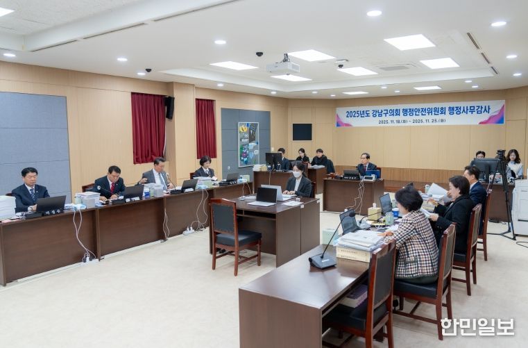 한민일보 서울포커스 국용호 기자 | 강남구의회 행정안전위원회는 제331회 제2차 정례회를 맞아 11월 18일부터 25일까지 총 8일간 중대재해예방실, 정책홍보실, 감사담당관, 행정국(동 주민센터 포함), 안전교통국 소관 부서에 대한 행정사무감사를 실시했다.