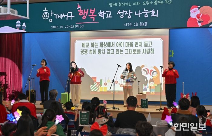이날 성장 나눔회에는 김이강 서구청장을 비롯해 행복학교 참여 가족 등 100여 명이 참석해 1년간의 배움과 변화를 되돌아보며 서로의 성장을 공유했다.