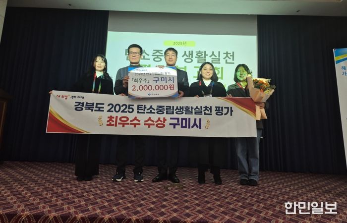 한민일보 서울포커스 김봉순 기자 | 구미시는 19일 경상북도 주최로 호텔금오산에서 열린 ‘2025년 탄소중립 생활실천 평가보고회’에서 최고 등급인 최우수상을 수상했다. 지난해 우수상에 이어 한 단계 높은 평가를 받으며 생활 속 탄소중립 실천 성과를 다시 한번 인정받았다.