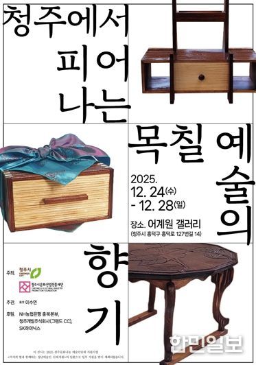 한민일보 서울포커스 김다남 기자 | 청주시문화산업진흥재단은 오는 24일 운천동에 위치한 어계원 갤러리에서 청년 작가 이수연의 개인전 ‘청주에서 피어나는 목칠 예술의 향기’가 개막한다고 밝혔다.
