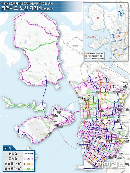 한민일보 서울포커스 유창렬 기자 | 인천광역시는 12월 22일 송도·청라경제자유구역 및 계양 테크노밸리(TV) 개발계획, 고속도로 건설 및 교통혼잡도로 개선사업계획 등 국가 상위계획을 반영해 광역시도 노선 체계를 재정비하여 고시한다고 밝혔다.