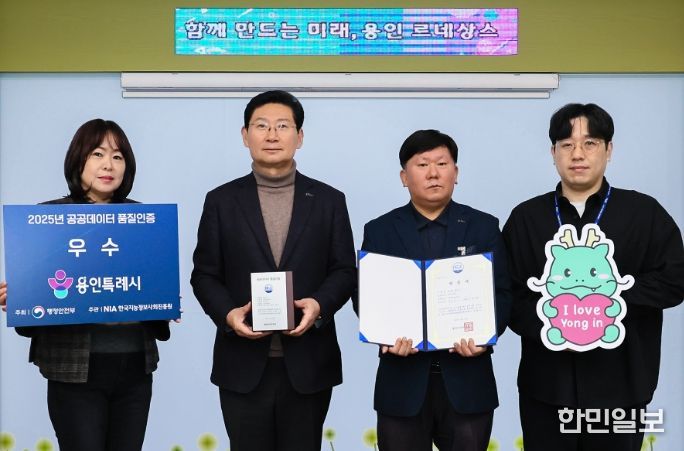 한민일보 서울포커스 김성윤 기자 | 용인특례시는 19일 행정안전부가 주관한 ‘2025년 공공데이터 품질인증’에서 우수기관으로 선정돼 지방자치단체 가운데 최초로 공공데이터 품질인증을 획득했다고 22일 밝혔다.