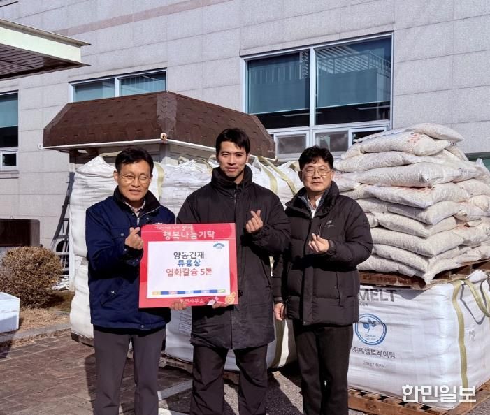 한민일보 서울포커스 차재만 기자 | 양평군 양동면은 지난 19일 양동건재 류용상 씨가 양동면사무소를 방문해 겨울철 제설작업에 사용될 염화칼슘 5톤을 기탁하며 지역사회 안전과 이웃사랑 실천에 동참했다고 밝혔다.