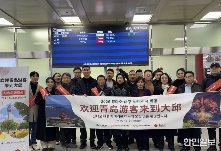 한민일보 서울포커스 김봉순 기자 | 대구광역시와 대구문화예술진흥원 관광본부는 대구국제공항에서 ‘칭다오-대구’ 신규 노선 취항을 맞아 중국인 관광객을 위한 환영 행사를 마련하고 본격적인 맞이에 돌입했다.