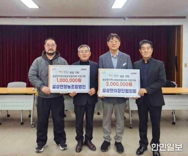 홍경남 설성면장은 “지역 단체들이 자발적으로 나눔을 실천해 주시는 모습이 설성면을 더욱 따뜻하게 만들고 있다”라며 “기탁해 주신 성금은 도움이 꼭 필요한 이웃들에게 소중히 전달하겠다”라고 말했다.
