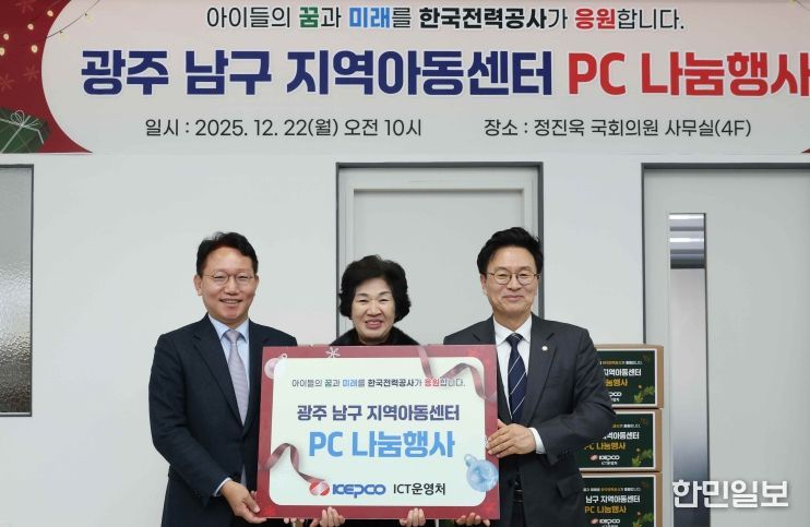 한민일보 서울포커스 박정민 기자 | 한국전력이 12월 22일 광주 남구 지역아동센터를 대상으로 ‘PC 나눔행사’를 개최했다. 이번 행사는 지역아동센터의 디지털 교육 환경을 개선하고 자원의 효율적 활용을 통한 나눔 문화를 확산하기 위해 마련됐다.