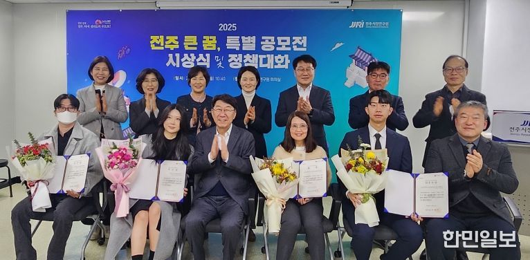 한민일보 서울포커스 김용택 기자 | 전주시정연구원(원장 박미자)은 22일 연구원 회의실에서 ‘2025 전주 큰 꿈 특별 공모전 시상식 및 정책 대화’를 개최했다.