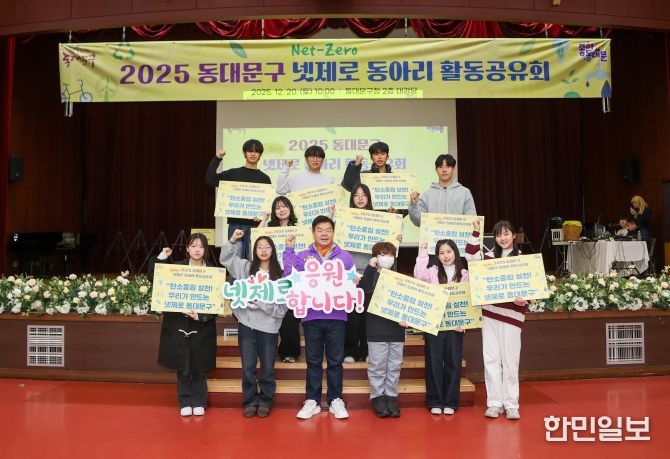 한민일보 서울포커스 임광현 기자 | 서울 동대문구가 청소년이 주도하는 탄소중립 실천을 ‘성과 공유’와 ‘확산’으로 이어가는 자리를 마련했다. 동대문구는 지난 20일 관내 초·중·고 학생으로 구성된 넷제로(탄소중립) 동아리가 한자리에 모여 1년간의 활동을 나누는 '2025 넷제로 동아리 활동 공유회'를 열고 행사를 성황리에 마무리했다고 밝혔다.