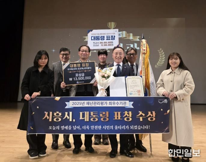 한민일보 서울포커스 유현민 기자 | 시흥시는 행정안전부가 주관한 ‘2025년 재난관리평가’에서 최우수기관으로 선정돼 지난 12월 22일 정부세종청사 국토교통부 대강당에서 열린 시상식에서 대통령 표창을 받고 특별교부세 3억 원과 포상금 1,350만 원을 확보했다.